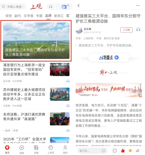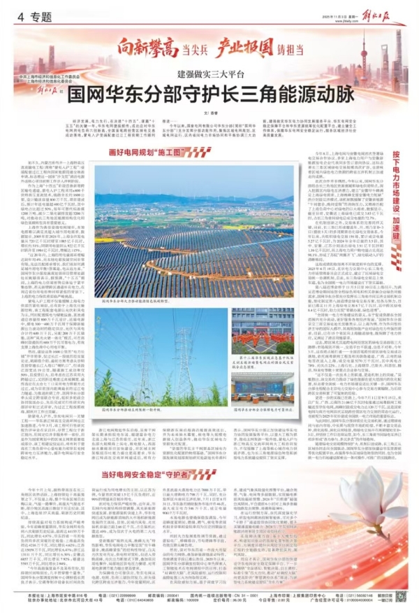 11月3日,《解放日报》、上观新闻客户端先后发布了《建强做实三大平台,国网华东分部守护长三角能源动脉》新闻稿,现全文转载如下。
